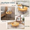 This 2-piece rustic round coffee table set is an ideal solution for your morning coffee or afternoon tea. Selected solid wood tabletop and heavy-duty metal frame make this coffee table robust and stable. Spacious round tabletop is thick and waterproof, while providing sufficient storage space. In addition, the unique aesthetic line design on the tabletop adds more glamour to this set, injecting casual elegance to any of your rooms. What's more, the table set is very easy to assemble, you can use the large table and the small table together to create a nested look or use them separately as needed, ideal for use as coffee tables, sofa side tables or bedside tables.