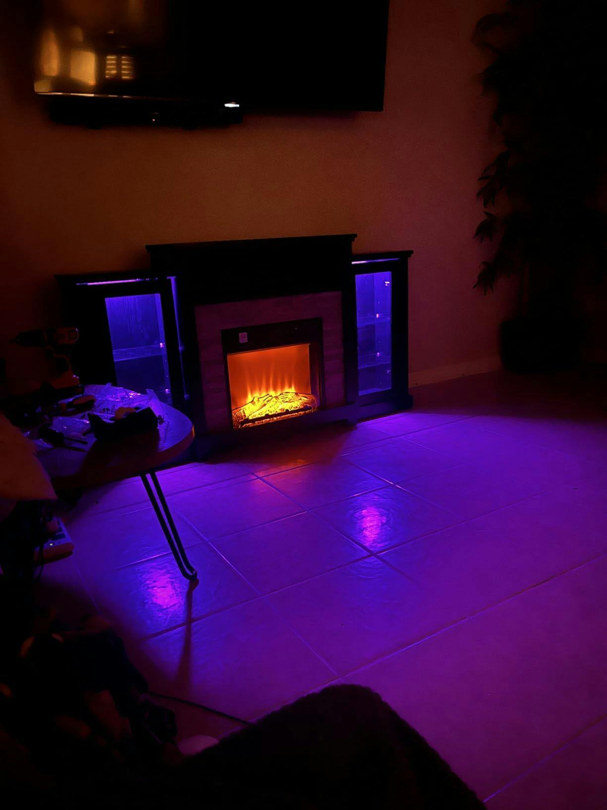 This entertainment center is a bit small. However, I was still able to use it as I intended which was to store my old gaming systems. The lights in the cabinet are a cool feature but as you can see it's not illuminated evenly throughout. I really love the electric fireplace. I don't have a fireplace so this gives that cozy feel, plus it has an electric heater so you can add extra warmth on those below freezing winter nights. I would say after putting this together, I hope to not have to put together another entertainment center for many years. This took a long time. Partly my fault for not grabbing the drill sooner and using a screwdriver to start 🤦🏻♀️