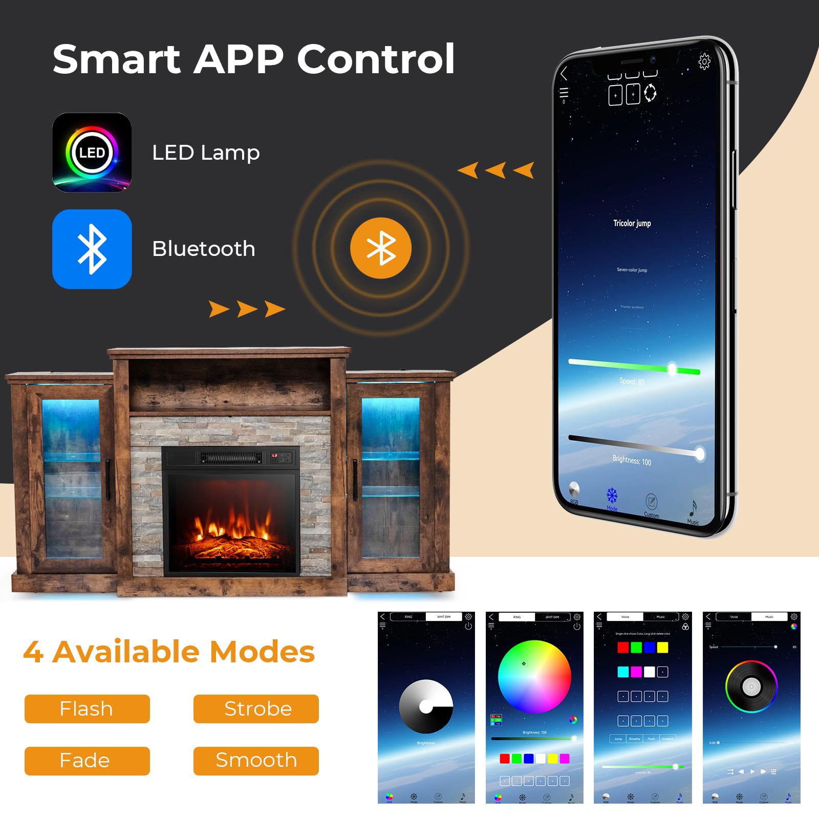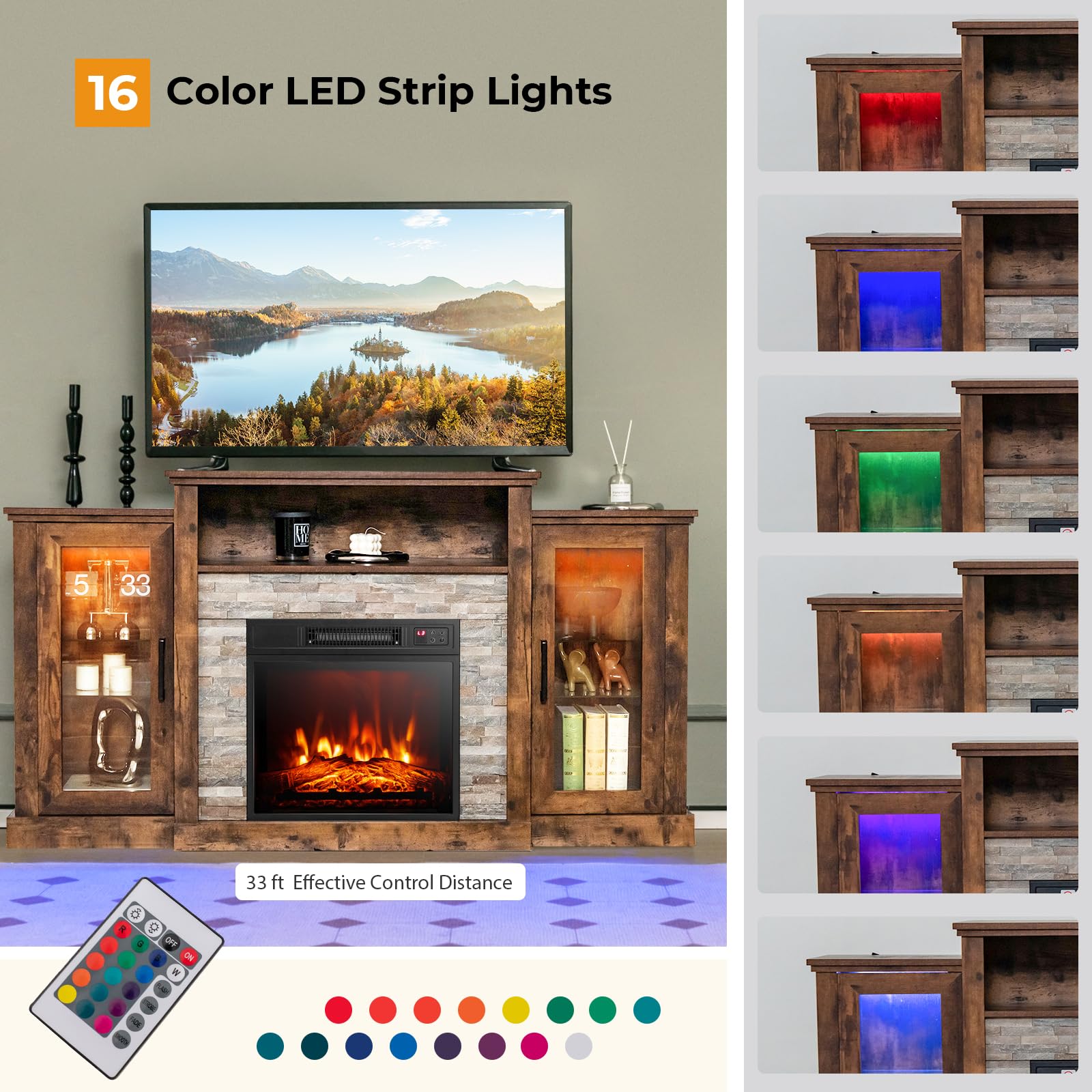 Fireplace TV Stand with LED Lights for TV up to 65”, Entertainment Center with 18” Electric Fireplace