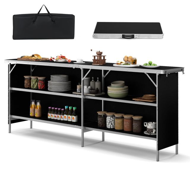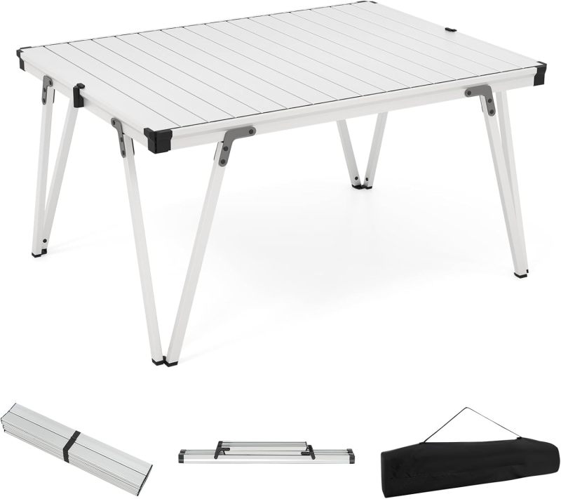 Are you looking for a reliable and versatile outdoor table for your adventures? Our outdoor camping table is the perfect solution. Crafted from high-quality aluminum, this lightweight and robust table is ideal for long-term outdoor use. The smooth and waterproof surface is easy to clean, saving you time and energy. Besides, with a portable and foldable design, setting up is a breeze, simply detach the tabletop and fold the frame and legs for compact storage. The stable triangular support structure, corner protectors, reinforced hinges, and nonslip foot pads ensure stability. With a large 176 LBS load capacity and a spacious 35.5” x 27” tabletop, this table provides ample space for all your outdoor needs. Hence, it can be widely used in camping, outdoor picnic or fishing.