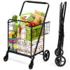 Are you tired of carrying a bunch of heavy shopping bags when you are heading home? The next time take this folding shopping cart with you! It is really a labor-saving design that holds a lot and rolls smoothly. You can grab the handle and push it around to pick up the grocery on your shopping list. And what about your handbag, umbrella or things like that? Just put them all in the addition rear basket. If you are to put something small, the intensive mesh base will hold it well! Walking on rough roads, you can maintain decent and hassle-free rolling as the large wheels . Finally you get home, take out the grocery and fold the cart up. It turns to be a compact unit that stays anywhere without taking much space.