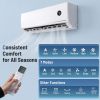 Experience year-round comfort with this mini split air conditioner. This mini split AC & heat pump system offers cooling and heating capacities of 18000 BTU, suitable for areas up to 1000 sq. ft. Its outdoor unit includes a chassis electrical heating system that helps it work stably in temperatures from -15℃/5℉ to 52℃/126℉. The inverter technology optimizes compressor performance and achieves an 18.1 SEER2 rating. The WiFi connectivity enables you to control the AC via your phone or voice commands, while the handy remote control provides easy manual adjustments. 7 modes and 6 fan speeds allow customization, complemented by features like 4D auto swing, child lock, and a 24-hour timer. The sleep mode and ultra quiet operation ensure restful nights. Additionally, maintenance is simplified with a self-cleaning function and washable filters.