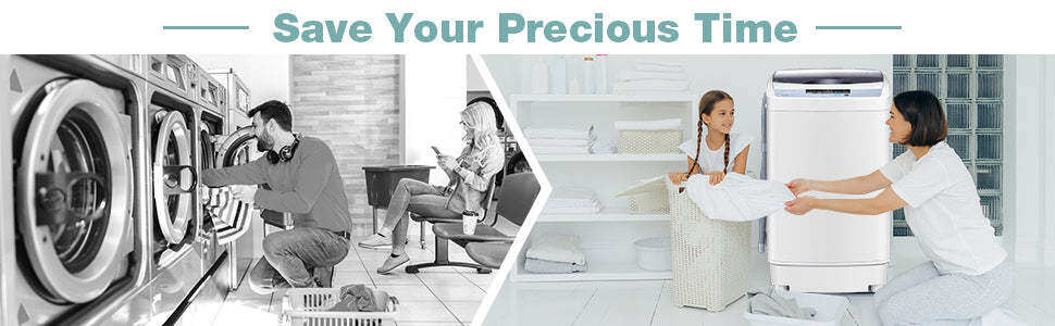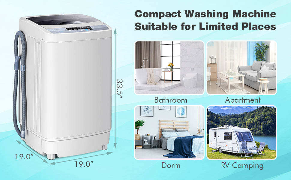 • Compact Design: Measuring 19” x 19” x 33.5” in dimension, this compact laundry washer is suitable for limited space, such as college dorms, apartments, and RVs to save space while providing powerful washing ability. In addition, the handle on the side makes you move it more conveniently.