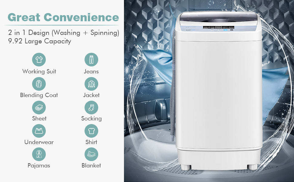 Full-Automatic Washing Machine Portable Compact 1.34 Cu.ft Laundry Washer Spin with Drain Pump