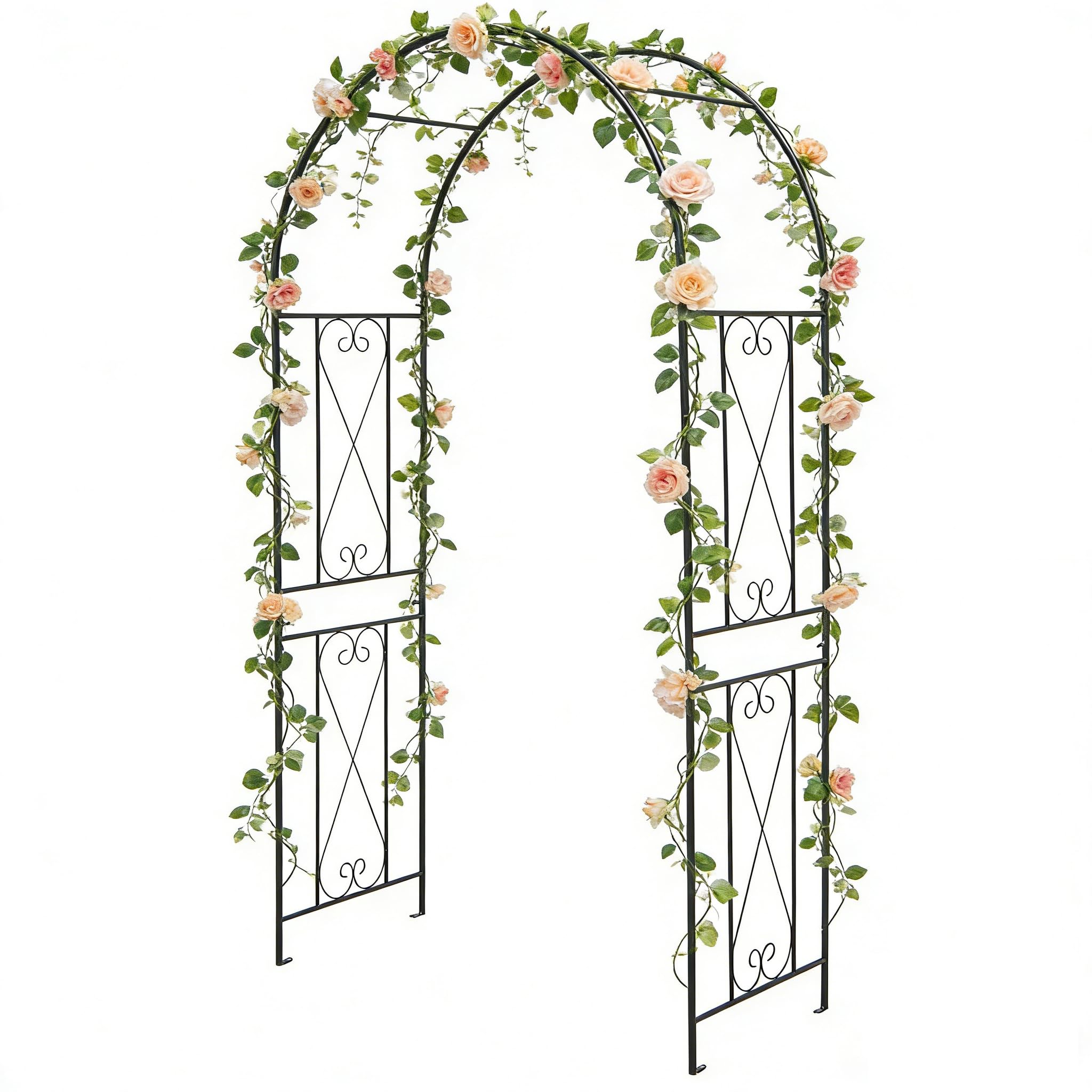 The 7.2 ft metal garden arbor trellis will highly enhance the beauty of your garden or front porch.