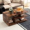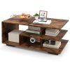 Combining elegance and functionality, this table features a unique irregular storage shelf and an exquisite wood grain finish, adding a touch of sophistication to any space. With a spacious tabletop and 2-tier large storage shelf, staying organized is effortless. Details of the coffee table showcase the better workmanship: crafted from durable thickened boards and reinforced feet, this table offers stability and longevity. Experience versatile usage and easy maintenance with this multifunctional centerpiece that seamlessly adapts to your daily activities.