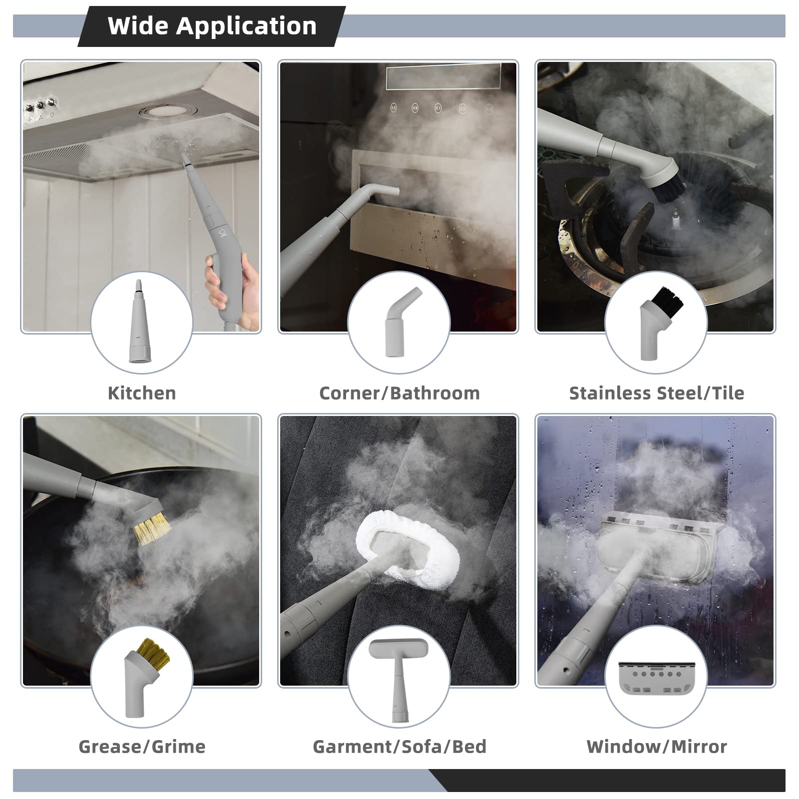 Handheld Multipurpose Steam Cleaner for Garment Windows Tires 10 Piece Accessory Set