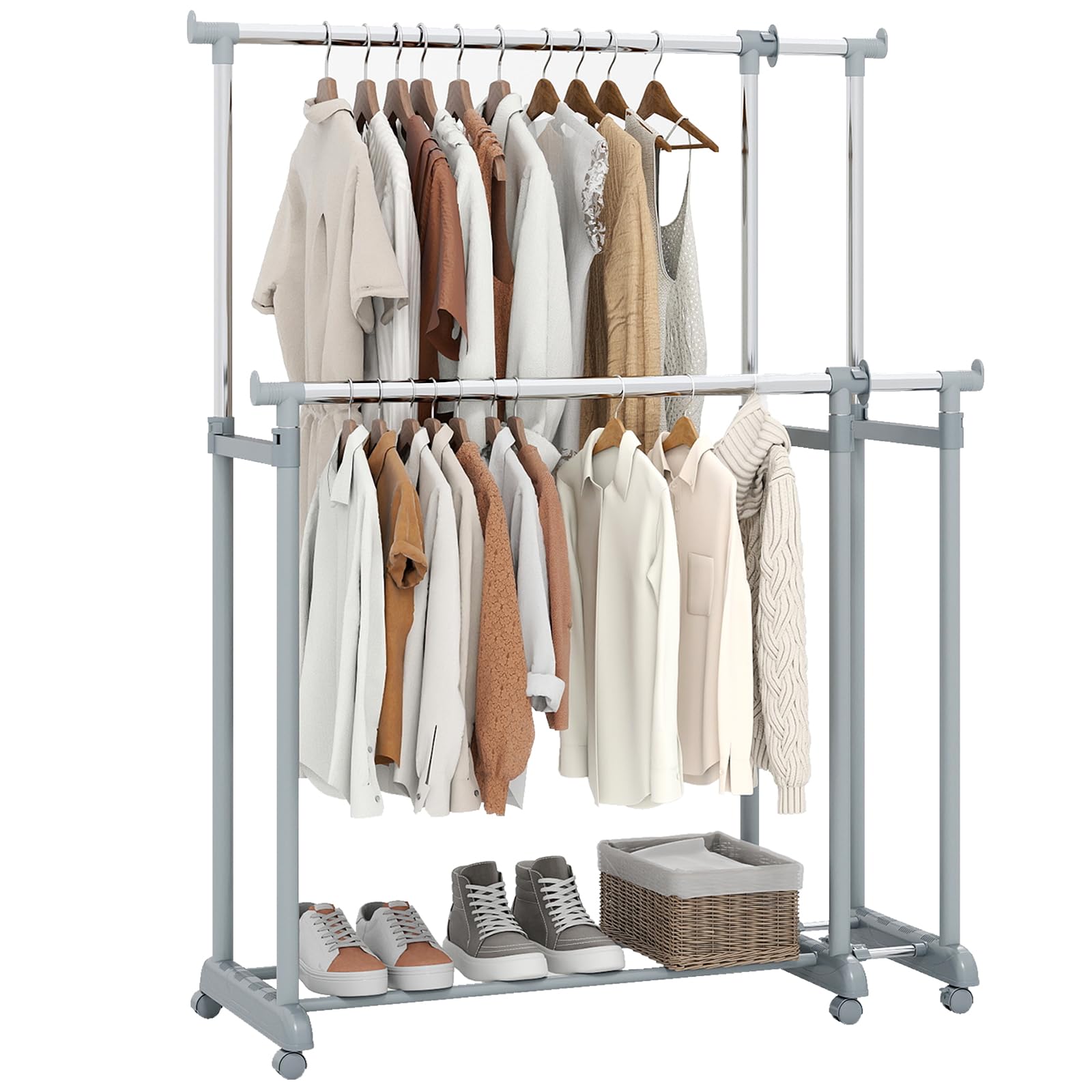 Heavy-Duty Double Rod Clothing Rack with Extendable Height & Width