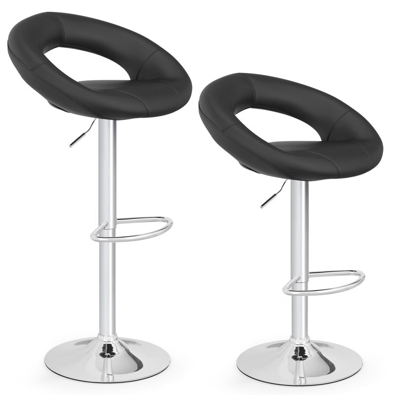 This bar stool set exudes luxury and comfort, offering you a fatigue-relieving choice. Each exquisite bar chair is made of skin-friendly PU leather and cozy sponge for optimal comfort with tight stitching for added durability. Featuring a hollowed backrest and comfortable footrest, each kitchen stool promotes relaxation. These bar stools have a stable lifting system for a stable sitting experience, allowing for adjustable seat height from 25" to 33", supported by an SGS-certified gas rod with a weight capacity of 330 lbs. With a 360° swivel function and anti-slip electroplated metal base, these kitchen island stools offer convenience and long-lasting durability. Versatile and stylish, these barstools seamlessly fit into different places and are ideal for table heights of 35"-43".