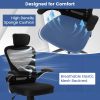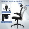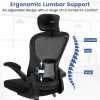 This ergonomic computer desk chair features an adjustable lumbar support and headrest for maximum comfort. Plus, the chair's height and backrest angle can be adjusted to suit different activities and users. In addition, the tilt mode and flexible motion allow for easy mobility and relaxation. Furthermore, the flip-up armrest design saves space, while the premium mesh and sturdy base provide durability and support. Whether working or resting, this office chair provides a comfortable and customizable seating experience.