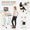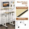 This mobile height adjustable computer desk is a perfect pick for your home office. The height of our standing computer desk can be adjusted from 27.5" to 40" to meet your needs of sitting and standing, which can help relieve back and neck pain while improving your work efficiency. Made of high-quality engineered wood and sturdy steel frame, our computer desk is stable and durable enough to support long time use. The board with a humanized tilting design will fit your natural postures and the anti-skid strip can help to protect items like laptop from falling off. And the 2 individual desktops can be combined together to provide ample space for your books, laptops, mouse, small printer, etc. Moreover, with 4 smooth rolling casters (2 are lockable), the desk is easy to move and stop.