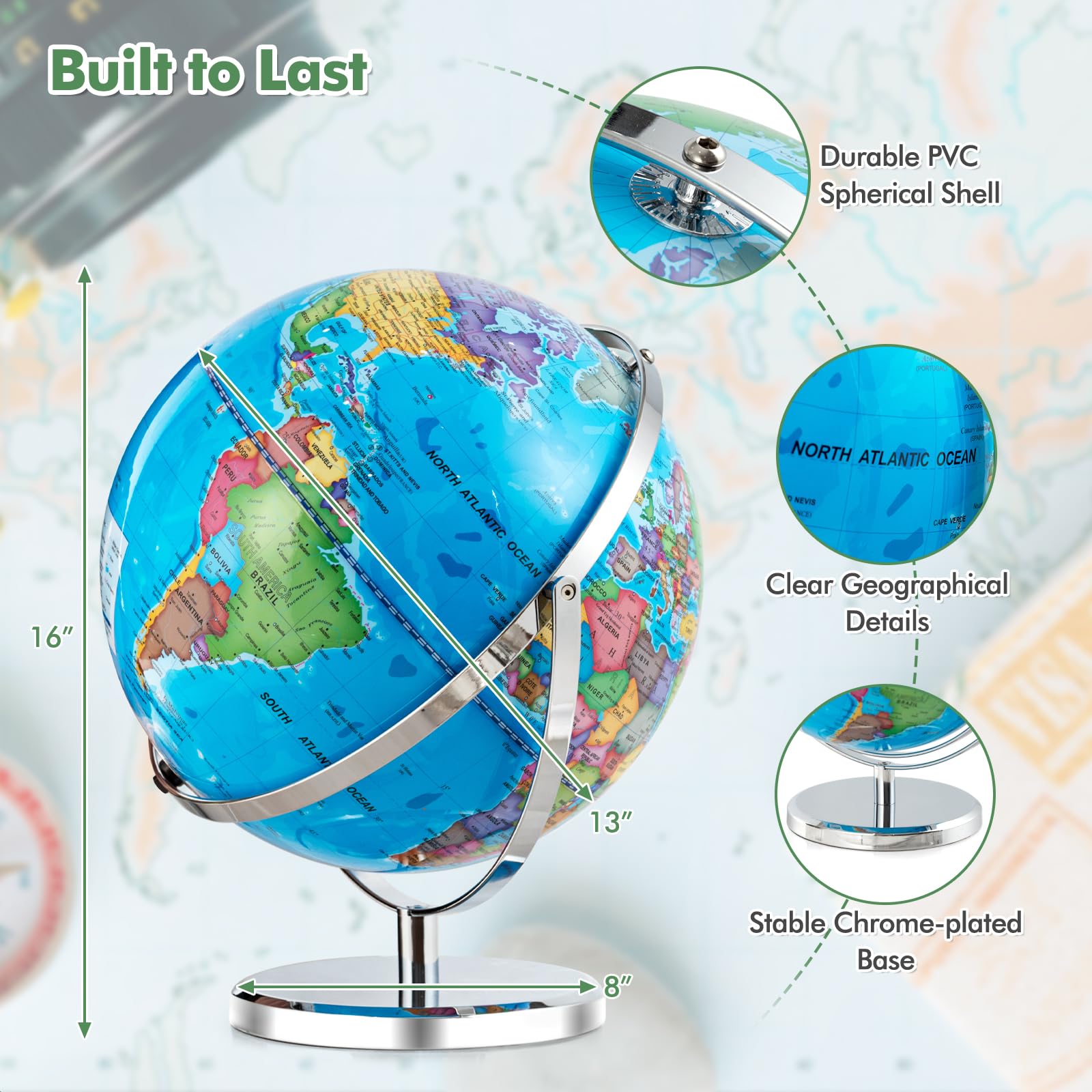 - 【Interactive 720°Rotation】 With a 720°rotation feature, this 13” desktop world globe is free to spin and explore the world from every angle. And its smooth rotation brings geography to life, knowing how big the world is.