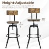 Industrial Bar Stool Set of 2 Vintage Adjustable Swivel Counter Height Kitchen Dining Chair with Arc-Shaped Backrest