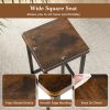 Designed for durability, the 12”L x 12”W seats are anti-crack, burr-free and easy to clean. Say goodbye to scratches on your guests’ clothes, thanks to the smooth edge banding. Its strong metal legs ensure stability and rust resistance, while also supporting an impressive weight capacity of 330 lbs. Your guests will love the 9” high footrest, allowing stretching legs and providing optimal comfort. The bar chairs are equipped with anti-slip foot pads, ensuring stability and floor protection. Perfect for small spaces, these space-saving breakfast stools bring versatility to your kitchen, dining room, or any occasion. With a touch of industrial elegance, their metal frame and vintage wood seats add a stylish accent to any decor. Assembly is a breeze with the detailed manual provided.