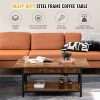Industrial Coffee Table 2-Tier Wood Cocktail Tea Table with Storage Shelf and X-Shape Steel Frame