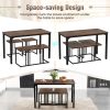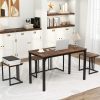 This 4 pieces dining table set starts delightful family time and friends gathering. Large tabletop not only provides spacious space for the placement of dinnerware and decorative items, but also offers enough space for home office activities. Powder-coated steel frame and durable MDF tabletop through delicate craftsmanship ensure long service time. In order to save more space, the bench and stools can be nested under the table when not in use. Owning this well-designed dining set makes it easier to enjoy delicious food and have a good time with your family and friends.