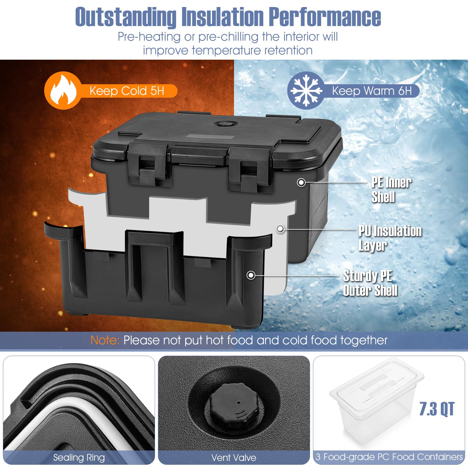Insulated Food Pan Carrier 31 Qt Catering Hot Box w/ 3 Food-Grade Pans