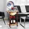 Italian-style globe wine rack is ideal for storage wine bottles and glasses. It features a wood construction, and antique stylish wine bar are made of high quality plastic. Handsome turned legs add to the authentic look. Smooth rolling casters that can be moved anywhere quietly and easily. Interior paint is the key of this item to become an artwork. Glass and bottle storage reside among artistically hand-painted interior frescoes reminiscent of domed ceiling, the exclusive work of art boasts secure spots for your treasured bottles and glasses.