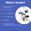 Includes tom, snare, bass, cymbal, pedal, 3- height stool, 2 drum sticks