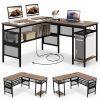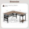 L Shaped Desk with Charging Station 55” Reversible Corner Computer Desk with Mesh Storage Shelves