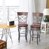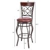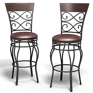 Our bar stools set is retro and elegant, which will add a retro style to your bar or kitchen. Featuring sturdy and powder-coated metal frame, it is rust-proof and corrosion resistant. Soft sponge-filled seats and suitable foot rest provide more comfort for you or your guests when enjoying your drinks or meals. The elegant-designed backrest is ergonomic and comfortable. Besides, the 360-degreee swivel seat give you the freedom to change direction for more convenient communication with others. In addition, the seat height can fully match the counter, which makes it perfect for pub, bar, cafe, etc., making your guest comfortable. Don’t hesitate to buy it! Don’t hesitate to buy it!