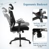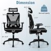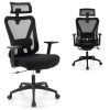 This adjustable office chair provides optimal support and comfort for the head, neck, and back. The 3D headrest can be adjusted in height of 3.2” and angle of 70° to provide support to your cervical spine at the most comfortable spot, while the armrests offer height adjustment of 3.4” as well. The desk chair features a 4-directional lumbar support system that can be customized vertically (2.2”) and horizontally (1”) to reduce the risk of back pain. A rocking backrest with a lock lever allows for gentle movement of 90°-120° to reduce discomfort. The office chair’s height is 43.5”-47” adjustable and it also has a 360° swivel feature. The mesh ergonomic backrest ensures proper air circulation, and the thick sponge offers softness and comfort. With a stable frame and wheels, this executive chair offers both stability and easy mobility.