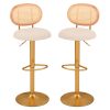 These elegant bar stools perfectly blend natural elegance and modern functionality. Enjoy the plush comfort provided by the velvet upholstered, cushioned seats, and relish the convenience of adjustable heights that can accommodate anyone and any place. Quick to assemble, built to last, and easy to turn around with their 360° swivel feature, these modern bar stools transform every sit-down into a luxurious experience. With robust construction and chic design, they promise not just a seat, but a centerpiece that captures attention.Elevate your living spaces with this enticing blend of comfort and style today!