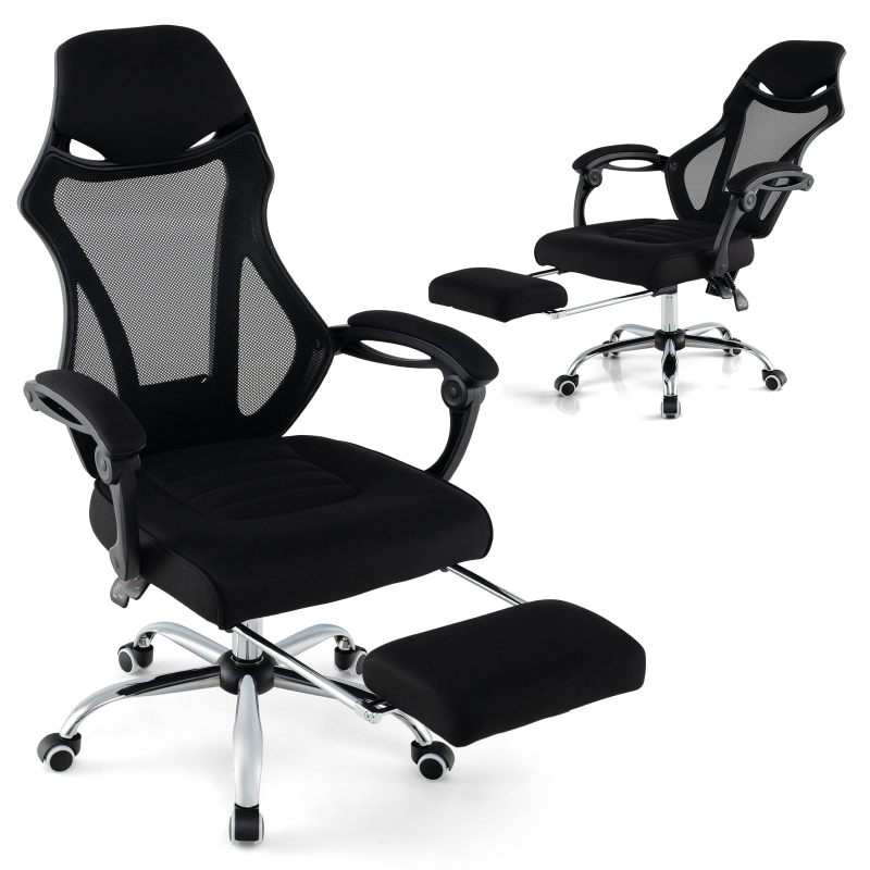 Featuring a breathable mesh backrest and high density sponge cushion with linkage armrests, footrest, and headrest, this office chair is designed for added comfort. Moreover, the 5 silent universal wheels helps you enjoy flexible mobility and easy movement. Additionally, fully adjustable with a premium SGS air rod for 3" height adjustment and rocking mode for comfortable rest. You can also adjust the reclining backrest from 90° to 135° to find the best resting positions. Plus, perfect for various spaces, this versatile desk chair complements any indoor decoration seamlessly.