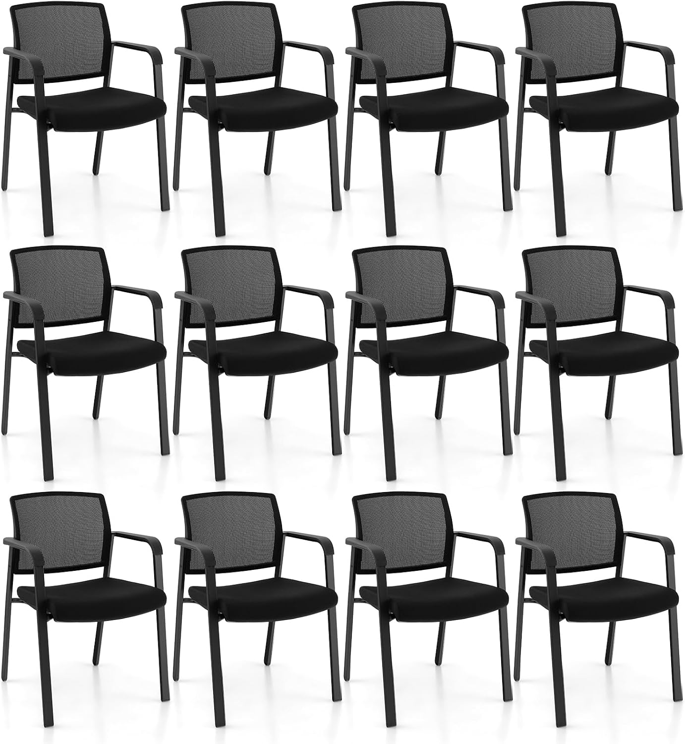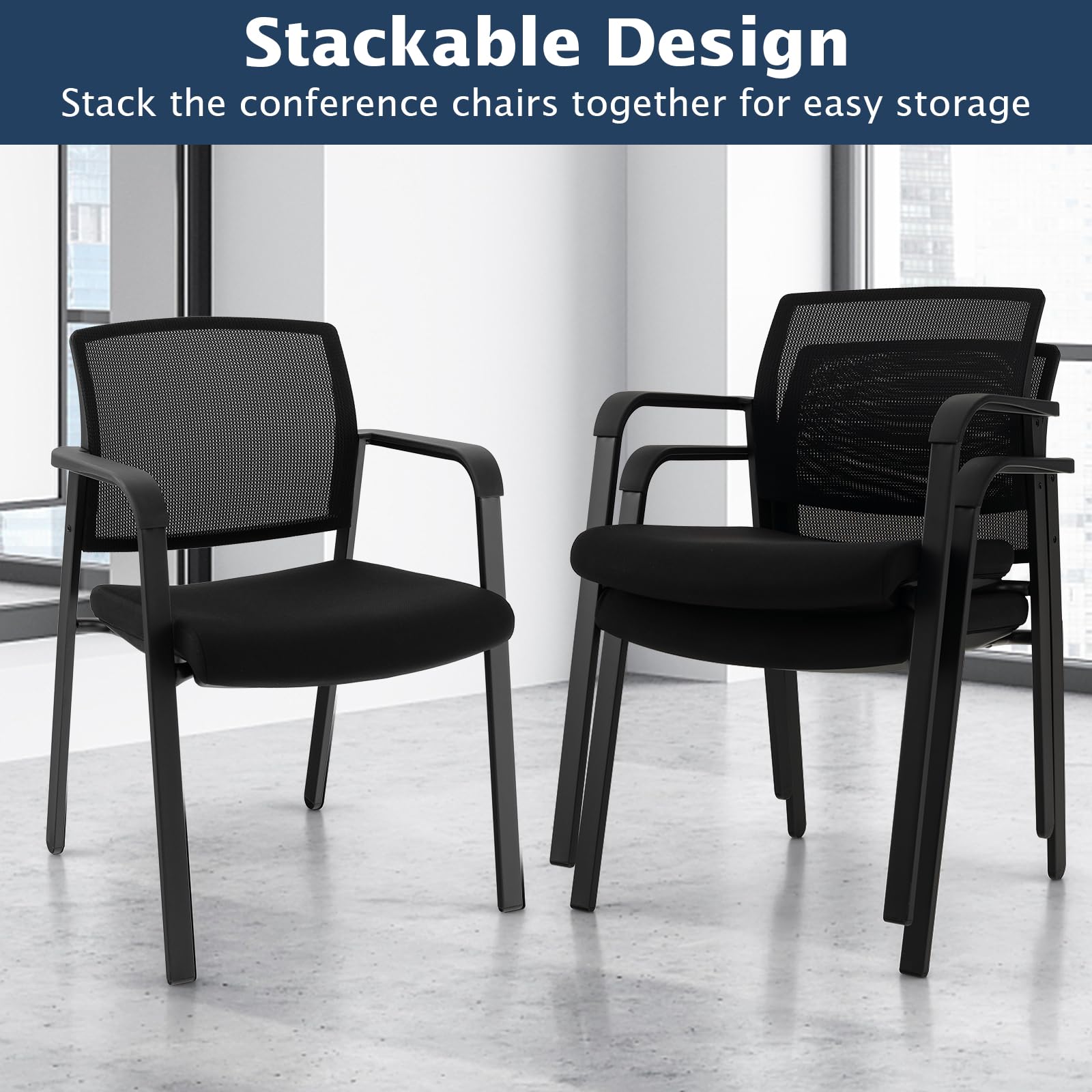 Office Guest Stacking Chairs with Mesh Backrest Armrest and Upholstered Seat