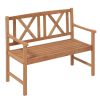 Enhance your outdoor relaxation with our acacia wood bench! Measuring 47.5" x 22" x 34" (L x W x H), this bench chair offers a spacious seating area for you and a friend, supporting a total weight capacity of 800lbs. Crafted from sturdy and deformation-resistant natural acacia wood, this outdoor loveseat chair ensures long-lasting durability. The ergonomic design features curved armrests and a breathable seat for maximum comfort. The bench's backrest showcases a beautiful pattern, making it a stylish addition to your patio, porch, garden, or any outdoor space. Choose this exceptional acacia wood bench for a cozy and inviting outdoor seating experience.