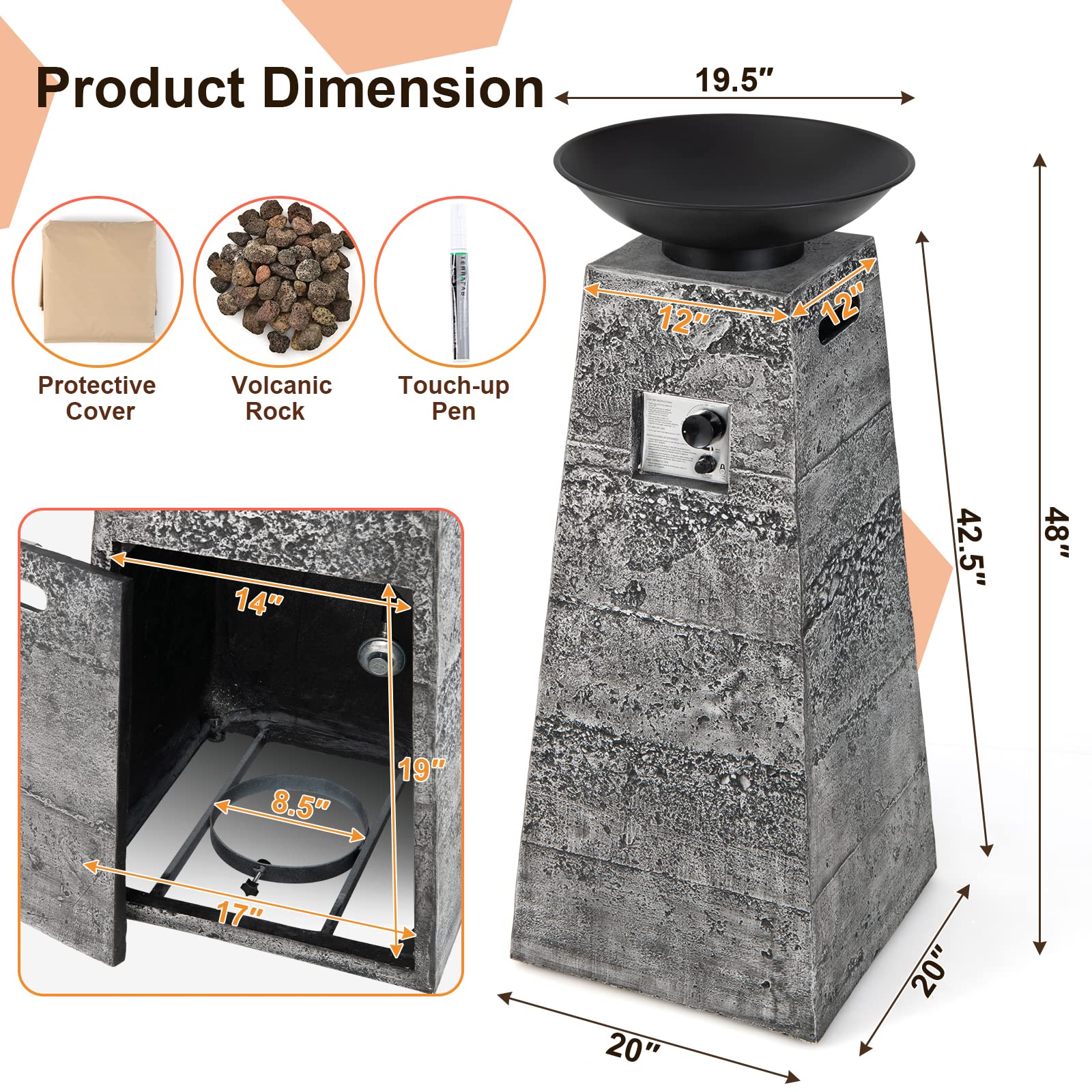With 30,000 BTU heat output, the fire bowl column will provide you endless warmness as well as add a piece of elegance to the surroundings. The metal basin is rustproof and sturdy, and the burner inside is made of stainless steel, so the fire bowl can withstand long-time burning with high temperature. The main body of the fire bowl column is made of steel frame and natural ore powder, which make the column perfect for outdoor use. The ignition is quite simple with the premium operation panel. When not in use, the fire bowl column can be protected by the all-weather PVC cover. Whether in the backyard, poolside or other outdoor occasions, this fire bowl column will always be a perfect addition.
