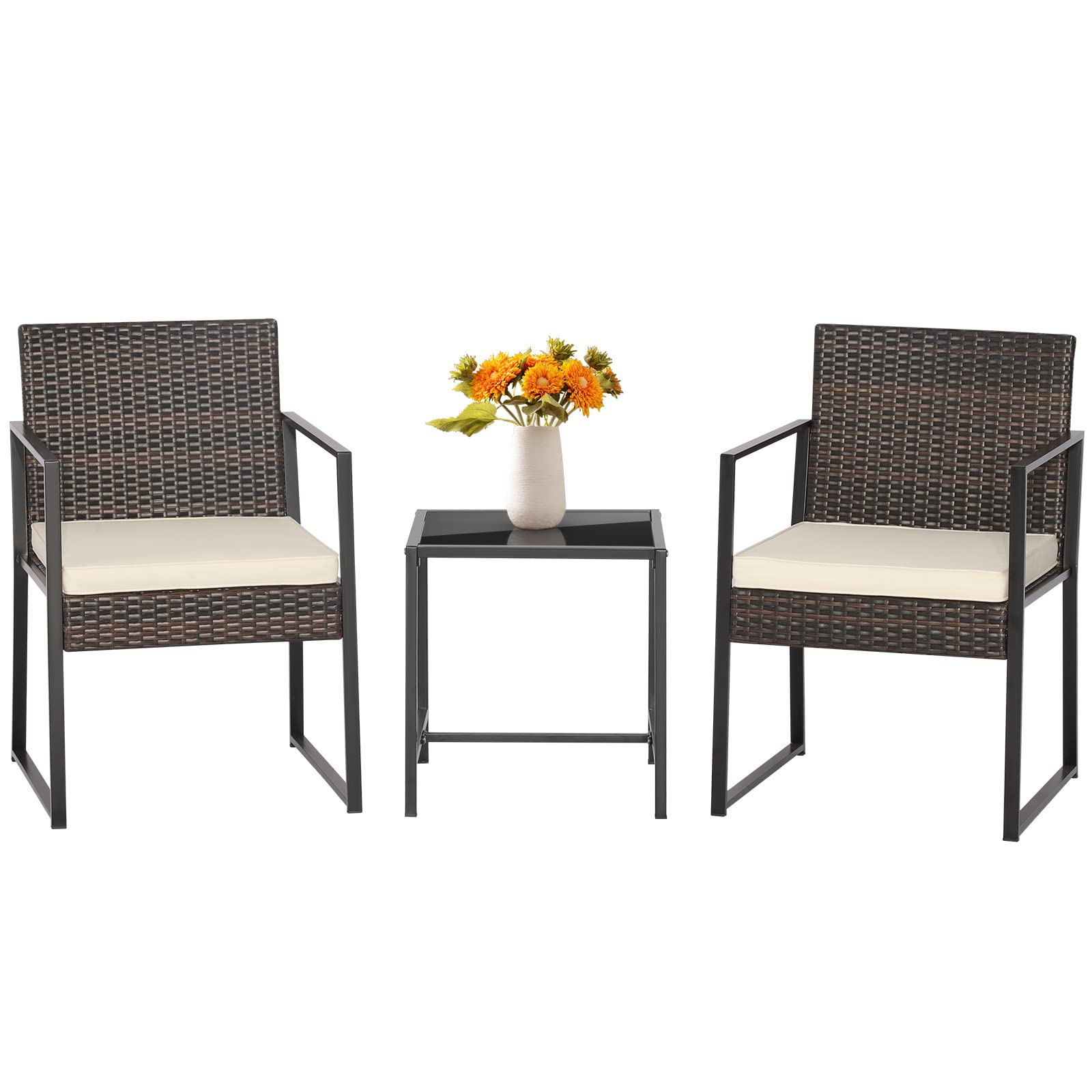 Material: PE Rattan, Metal, Tempered Glass, Sponge, Polyester
