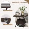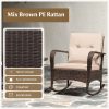 This outdoor rattan rocking chair set with a coffee table is designed to bring comfort and style to your patio, balcony, garden or backyard. The rocking chair provides a smooth and stable rocking experience with anti-slip rubber feet for enhanced safety. The side table features a tempered glass top, making it ideal for placing drinks, snacks or decorative items. Constructed from premium rattan, this 3 piece patio furniture set is sturdy, fade-resistant and built to last for outdoor use. It comes with a thick high-density sponge cushion for comfort, and the cushion cover is removable and washable for easy cleaning.