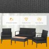 Outdoor Wicker Conversation Set with Acacia Wood Coffee Table