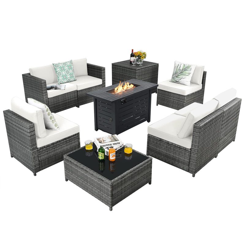 Outdoor Wicker Rattan Sectional Sofa Set with 4'' Thickened Cushions