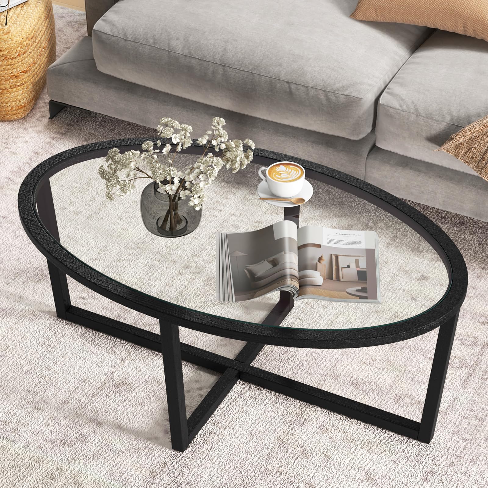 Elevate the sophistication of your living space with this exquisite tea table. Boasting a stunning premium tempered glass top that resists scratches and offers durability, this table exudes elegance. More details of the coffee table showcase the better workmanship: the natural acacia wood structure, featuring sturdy legs and a stable x-shaped base, ensures long-lasting use. With ample storage space for potted plants, cup and saucer, this table seamlessly combines style with functionality.