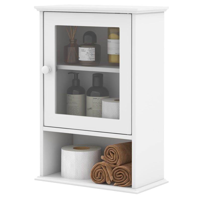 With white finish elegant and simple appearance, this cabinet will well match with your furniture in your home. It can perfectly blend in various decoration styles and leave your guests a deep impression. Featuring a open cubby and 2-tire cabinet with tempered glass door, this cabinet adds storage space to your room . It is ideal option for small bathroom. Sufficient space to storing and organizing linens, toiletries, and bath essentials like soaps, shampoos, body wash, and more. And, the design of door not only to hide the item but also to keep moisture and dust out. Our cabinet made of thick MDF board with smooth paint, waterproof and anti-corrosion, which ensures durable and sturdy. So, don't worry, this bathroom cabinet can provide long time service for your family.