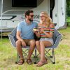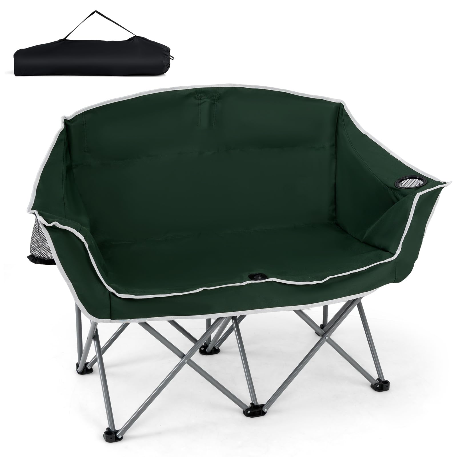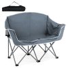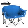 Double up on comfort with the COSTWAY Double Camping Chair, crafted from durable PVC-coated Oxford cloth that's both tear-resistant and fade-proof. The roomy seat, comfortable backrest, and armrests provide ergonomic support for hours of relaxation. Its heavy-duty metal frame supports up to 660 lbs, while anti-slip foot pads keep it steady on uneven ground. Lightweight and foldable, it comes with a carry bag for easy transport. Featuring two mesh cup holders, this loveseat is perfect for sharing drinks and unwinding together at the beach, campsite, or park.