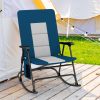 Oversized Folding Rocking Camping Chair Padded Portable Outdoor Rocker with Side Pocket and Hard Armrests for Patio