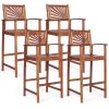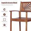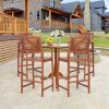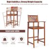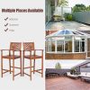 Patio Bar Stools Set Outdoor Acacia Wood Bar Chairs with Sunflower Backrest