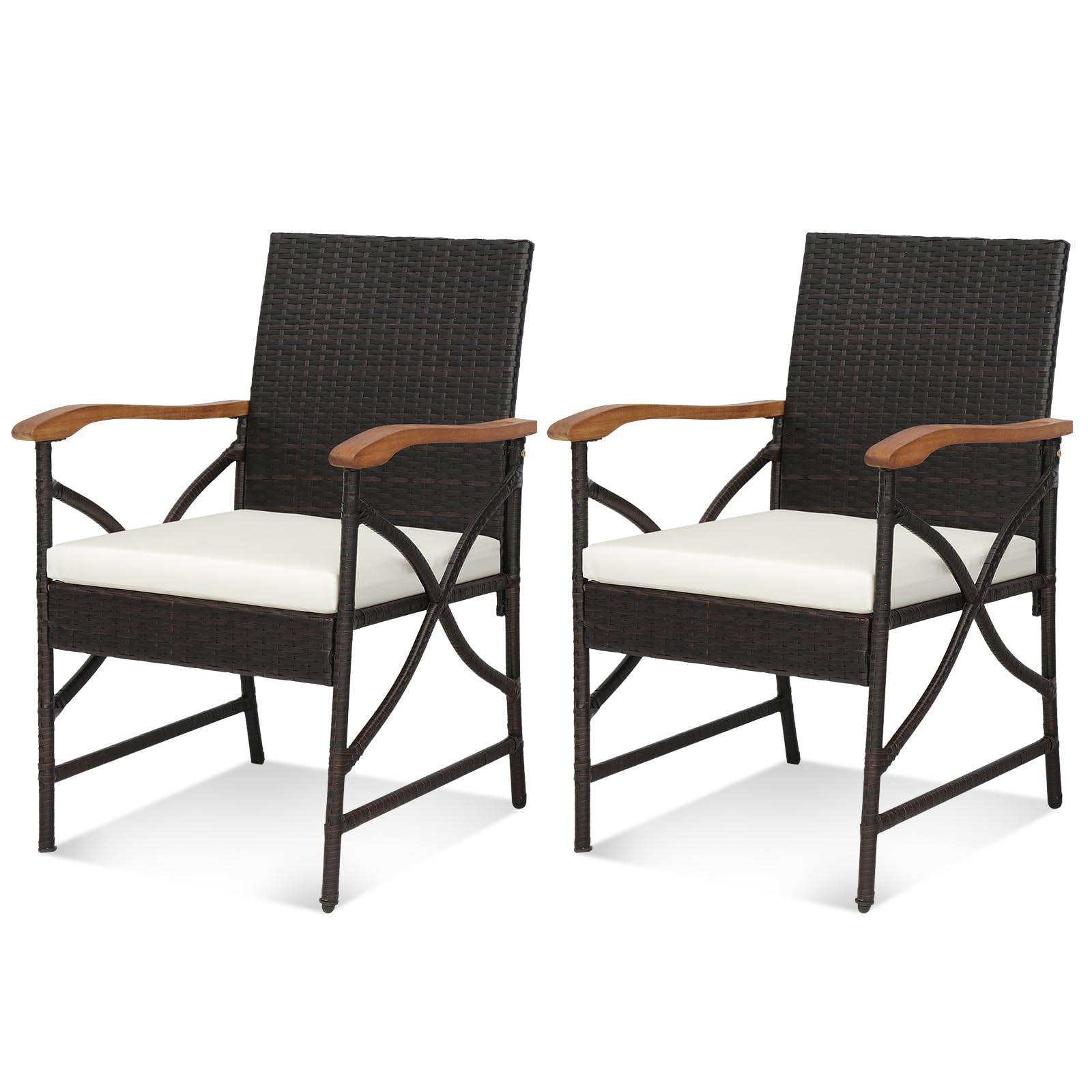 Elevate your outdoor dining space with these premium outdoor dining chairs, expertly crafted to blend durability, ergonomic comfort, and timeless style for patios, gardens, balconies, and backyard gatherings. Built with a heavy-duty metal frame that delivers exceptional structural stability and rust resistance, the chairs pair seamlessly with hand-woven rattan for the entire seat and backrest, creating a design that stands up to fading and daily outdoor wear without compromising on aesthetic appeal.