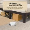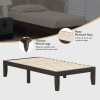 Constructed of solid rubber wood frame, this platform bed is sure to last for years. 14 sturdy wooden slats ensure excellent support and extend the life of any foam, latex or spring mattress without the use of a box spring. We provide you with multiple sized twin, full, queen and king sizes to choose. The twin size supports a maximum weight capacity of 250 lbs, while all other sizes can support up to 500 lbs. And with 14" off-ground height, you will have plenty of room for extra storage. The simple modern wood frame looks great in any bedroom. With such a solid, beautiful, and easy-to-assemble mattress foundation, your bedroom will be a comfortable place to sleep.