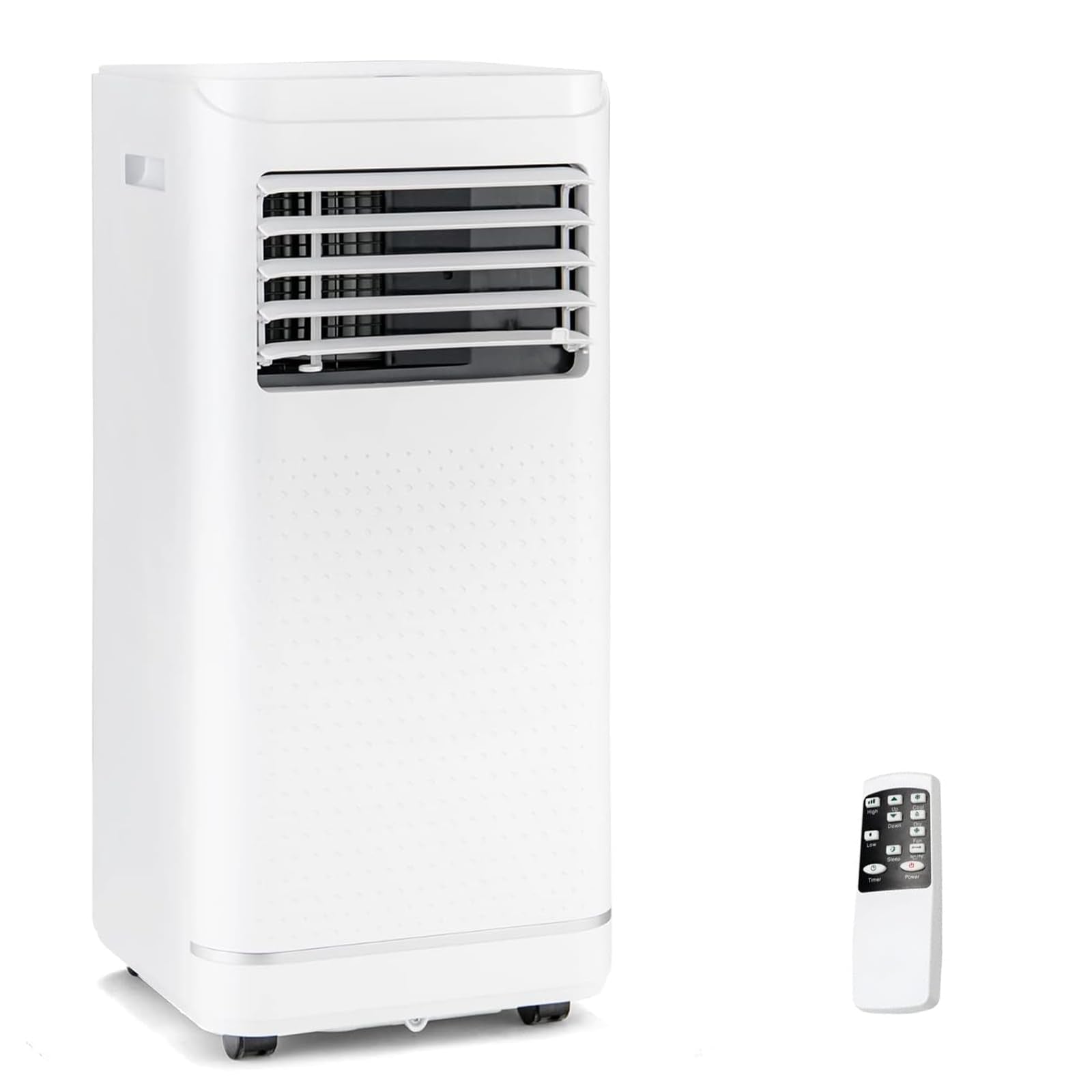 This 8000 BTU portable air conditioner with adjustable wind direction and washable filters provides powerful, cool and clean air flow for your space. Designed with cooling, dehumidifying, fan and sleep mode, this AC unit can meet various needs for maximum comfort. The noise level is lower than 54 dB, creating a quiet environment for you to sleep, work, etc. Besides, there are 2 speeds to choose from: high/low. And you can preset a 1-24 hour timer to turn the portable AC on or off, which can save energy. The handy remote control and LED touch panel make it easy to operate. What's more, the removable filters and 2 drain holes ensure convenient cleaning & drainage.