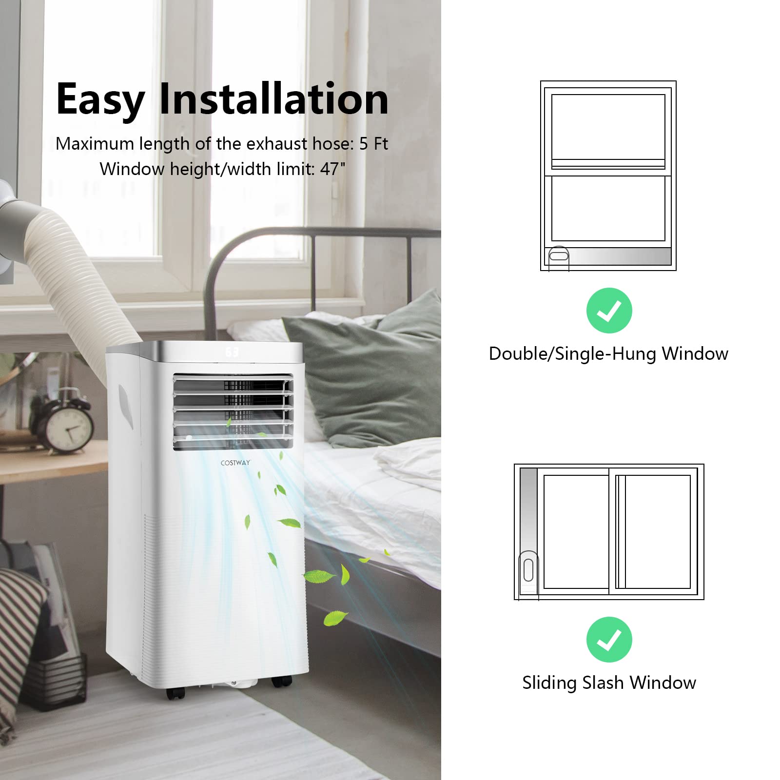 - Easy to Installation: Move your portable air conditioner to the preferred cooling area, specifically designed to fit most sash windows or hung sash windows, connect the included hose and window kit adapter, adjust the louver at the air outlet, and then open the unit to start cooling. No extra tools are needed for assembly, and installation instructions are simple and can be completed by anyone.