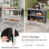 - Tabletop and 2 open shelves provide classified space to place utensils in order