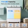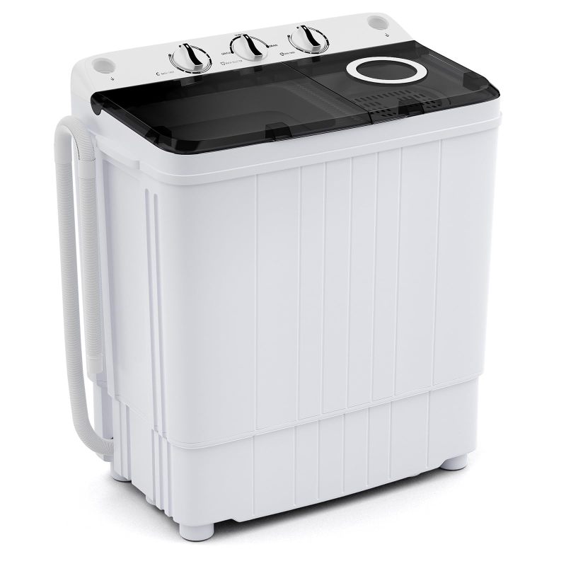 The twin tub washing machine is meticulously designed to optimize efficiency and conserve both time and energy. Its dual-tub configuration enables you to handle different tasks simultaneously or independently. Operating this washing machine is a breeze, thanks to the separate knobs for setting washing time (0-15 mins), washing modes (gentle/normal/drain) and spinning time (0-5 mins). what’s more, equipped with powerful dual motors, it achieves exceptional cleaning performance. And you can also enjoy effortless drainage with the extended drain hose and built-in drain pump. Furthermore, the user-friendly design improves your experience with this washer & spinner combo, including the spin tub safety cover, convenient handle, cable management and stable base. Its compact size renders it ideal for dorms, RVs, and apartments.