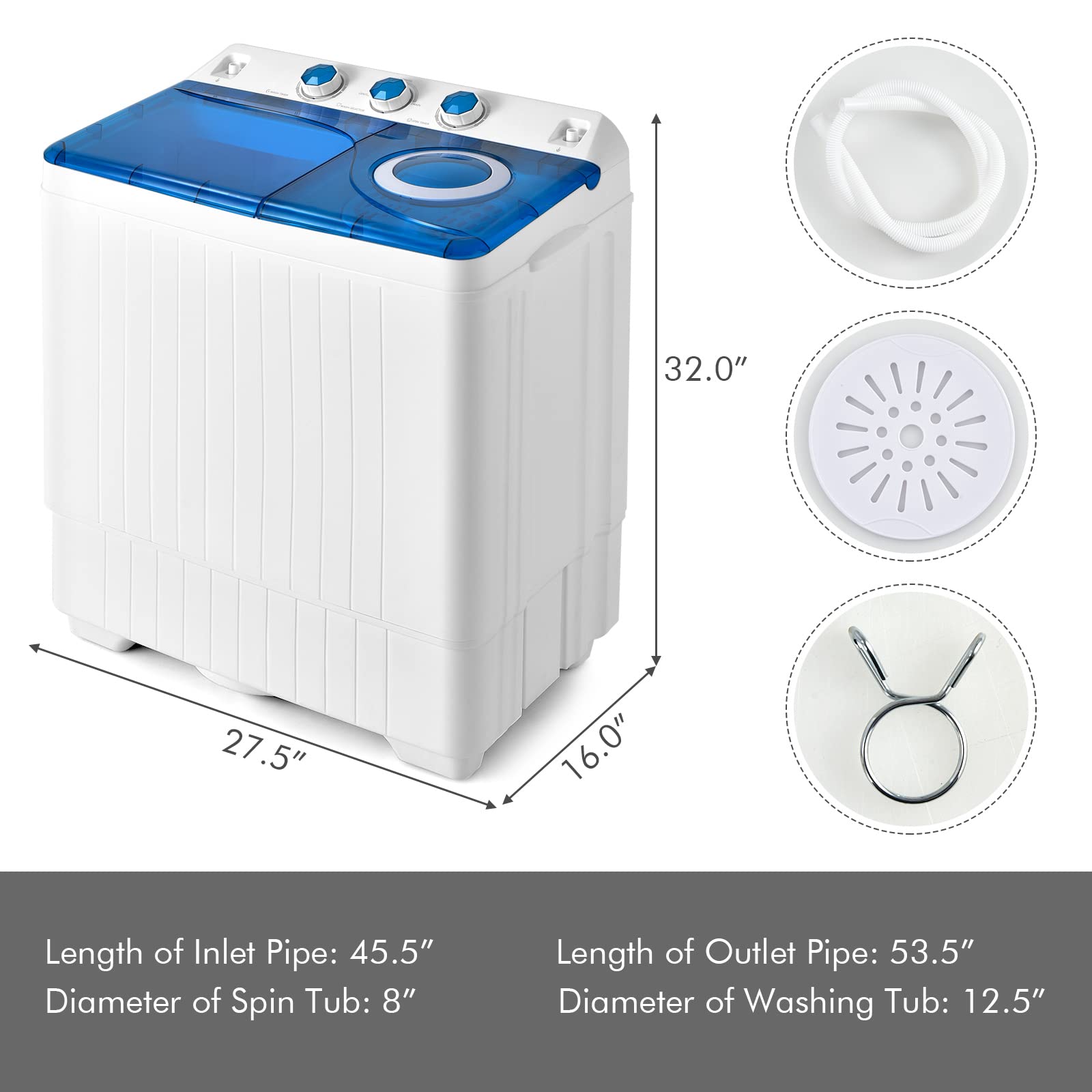 Portable Washing Machine 2 in 1 Twin Tub 26Lbs Capacity Washer(18Lbs) and Spinner(8Lbs) with Control Knobs