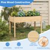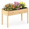 The raised garden bed is crafted from natural pine wood that resists deformation and promises lasting durability. The splinter-free surface features protective coating for prolonged use. Its spacious planting area accommodates a diverse array of vegetables, flowers, or herbs, while an included non-woven liner maintains healthy soil conditions and shields the wood from damage. Plus, 10 drainage holes are designed to promote airflow and prevent water-logging, thus helping roots thrive. Moreover, the raised legs reduce back strain and acts as a barrier against wild animals, keeping your plants safer. Perfect for decks, balconies, or greenhouses, the garden bed adds a rustic accent to any space, and it can easily be painted to showcase your unique style.