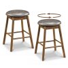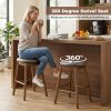 These kitchen island stools feature sturdy rubber wood frames that marry lasting strength and natural beauty. With resilient sponge filling and easy-clean PU leather upholstery, the seats are comfortable for long periods of sitting. Each counter height stool has built-in footrests to offer ergonomic support and help reduce leg fatigue. Additionally, the seamless 360-degree swivel seats enhance flexibility, while the 25-inch seat height and backless design offer space-saving functionality, making these bar chairs perfect for most kitchen counters.