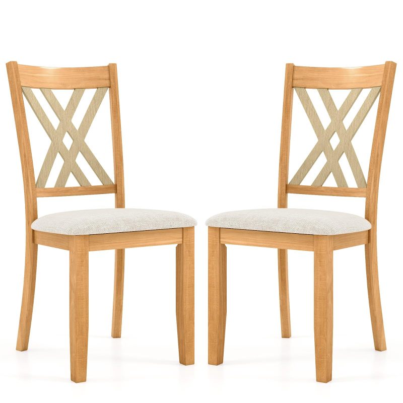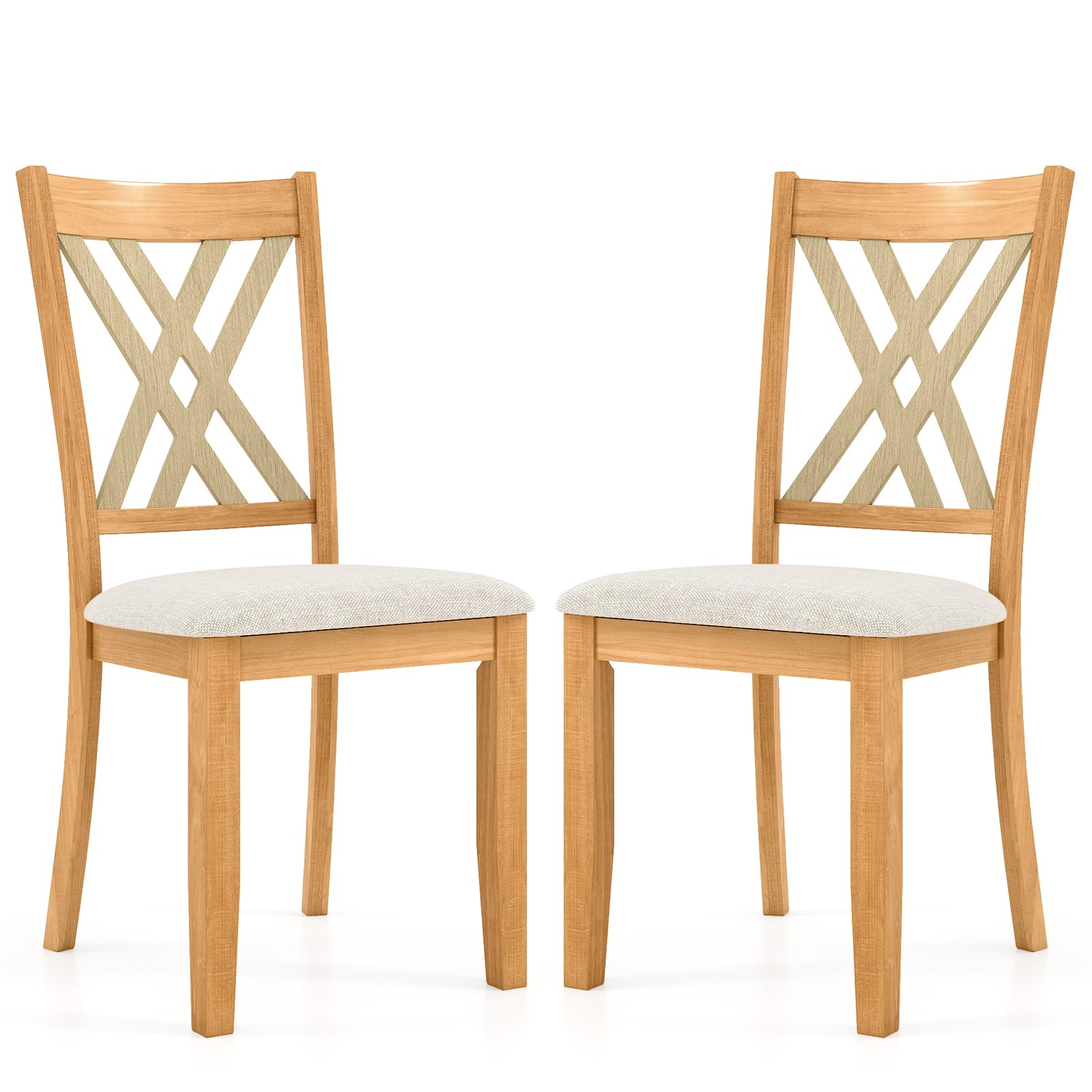 Made of high-quality materials, the dining chair set provides optimal longevity and great comfort. The selected fabric feels cozy and is skin-friendly. The comfortable padding is elastic, supportive, and enduring. Moreover, each kitchen chair is made of natural rubber wood that ensures stability and a large load capacity of 330 lbs. Embrace the rustic charm of farmhouse chic with the X-shaped frames that add a touch of timeless elegance to any space. Versatile in design, the elegant addition at 23.5’’L x 19.5’’W x 39’’H can seamlessly blend into any room, whether it be your kitchen, dining room, living room, or restaurant.